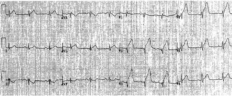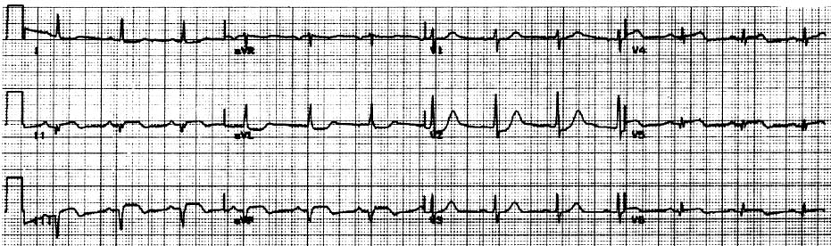 revealed subtotal obstruction of the LMCA and 99% LCF ostium stenosis. (This ECG was