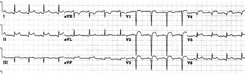 Figure 1 The 12-lead ECG in an anterior wall AMI. There is ST