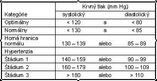 Klasifikácia hodnôt krvného tlaku u dospelých vo veku od 18 rokov